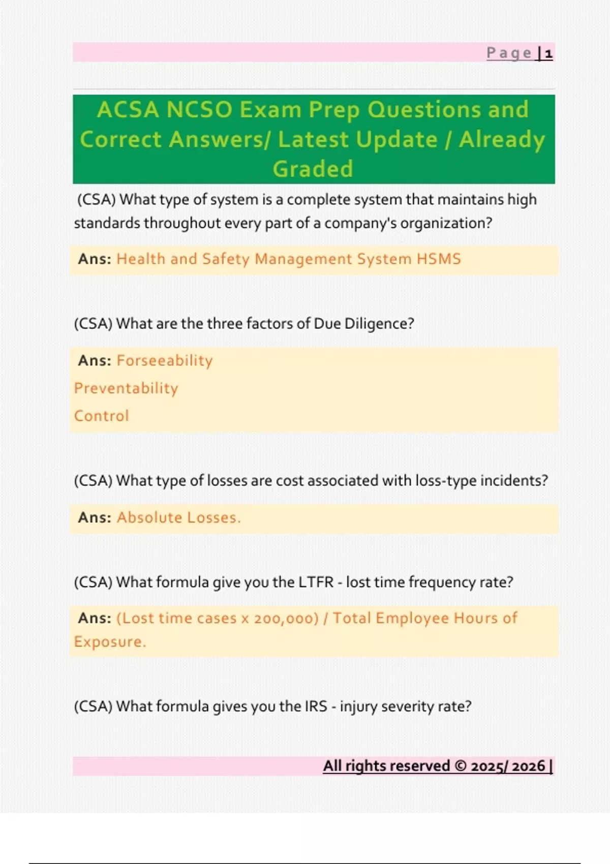ACSA NCSO Exam Prep Questions and Correct Answers/ Latest Update / Already Graded