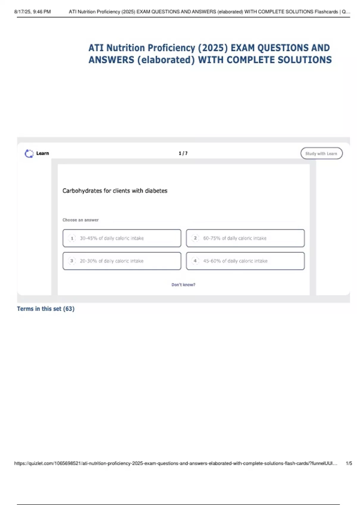 , 8/17/25, 9:46 PM ATI Nutrition Proficiency (2025) EXAM QUESTIONS AND ANSWERS (elaborated) WITH COMPLETE SOLUTIONS Flashcards | Q…