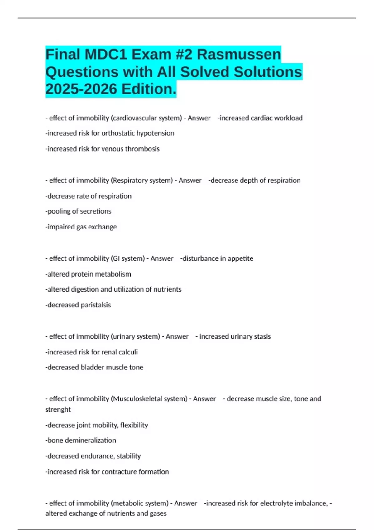 - effect of immobility (cardiovascular system) - Answer -increased cardiac workload