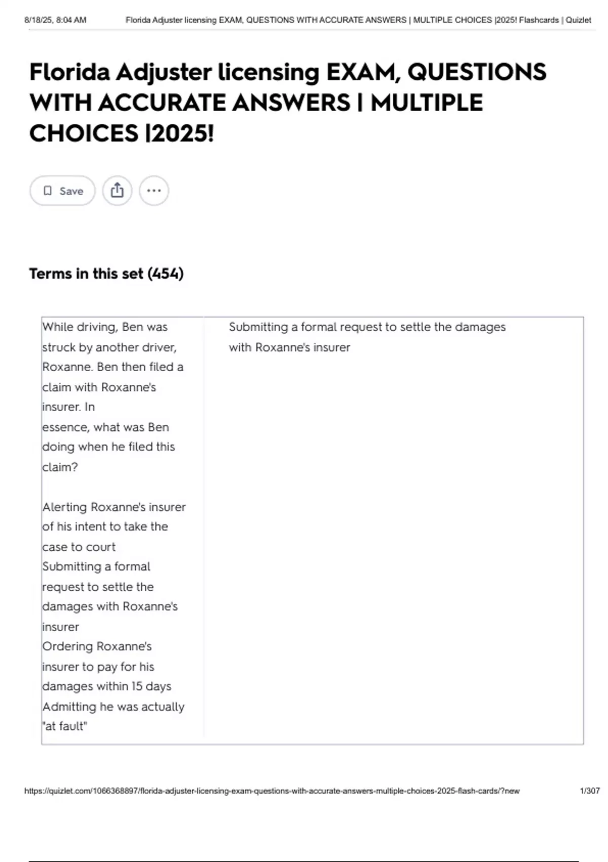 , 8/18/25, 8:04 AM Florida Adjuster licensing EXAM, QUESTIONS WITH ACCURATE ANSWERS | MULTIPLE CHOICES |2025! Flashcards | Quizlet