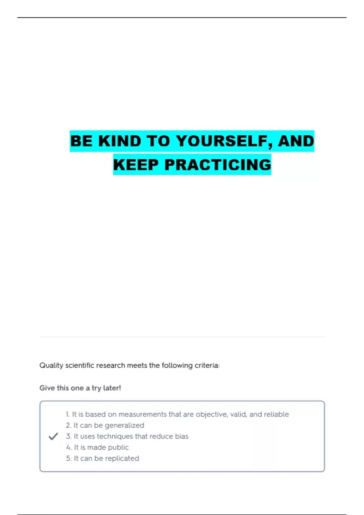 Quality scientific research meets the following criteria: