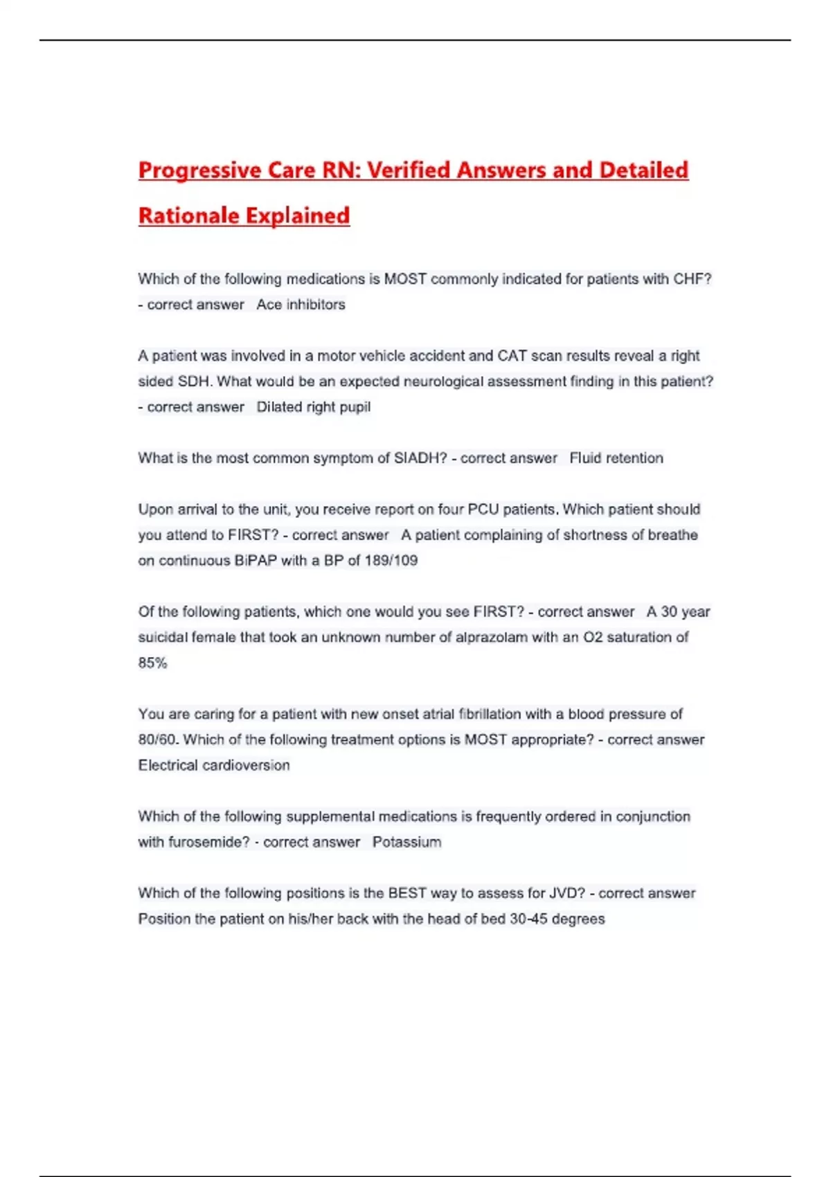 Progressive Care Rn Verified Answers and Detailed Rationale E