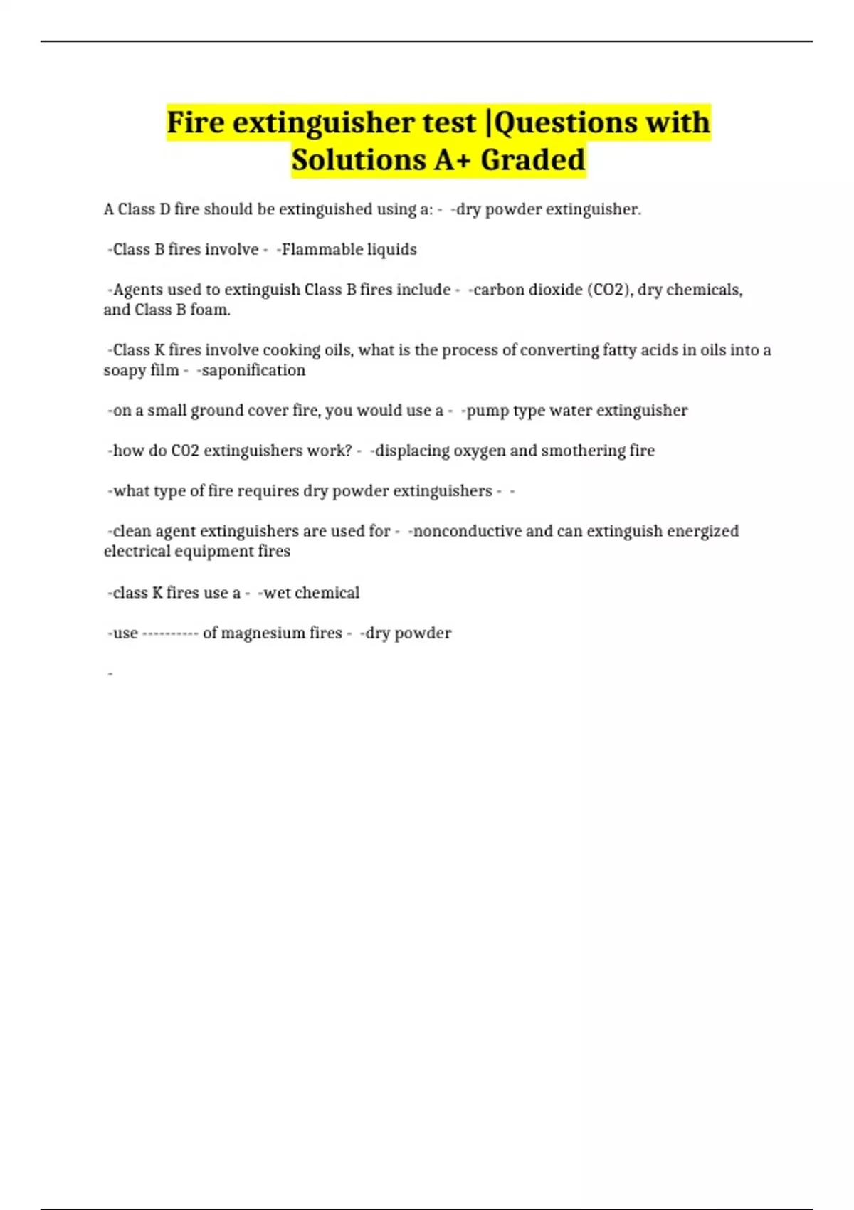 Fire extinguisher test |Questions with