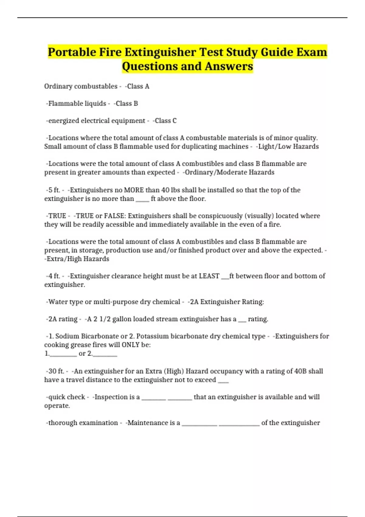 Portable Fire Extinguisher Test Study Guide Exam Questions and Answers