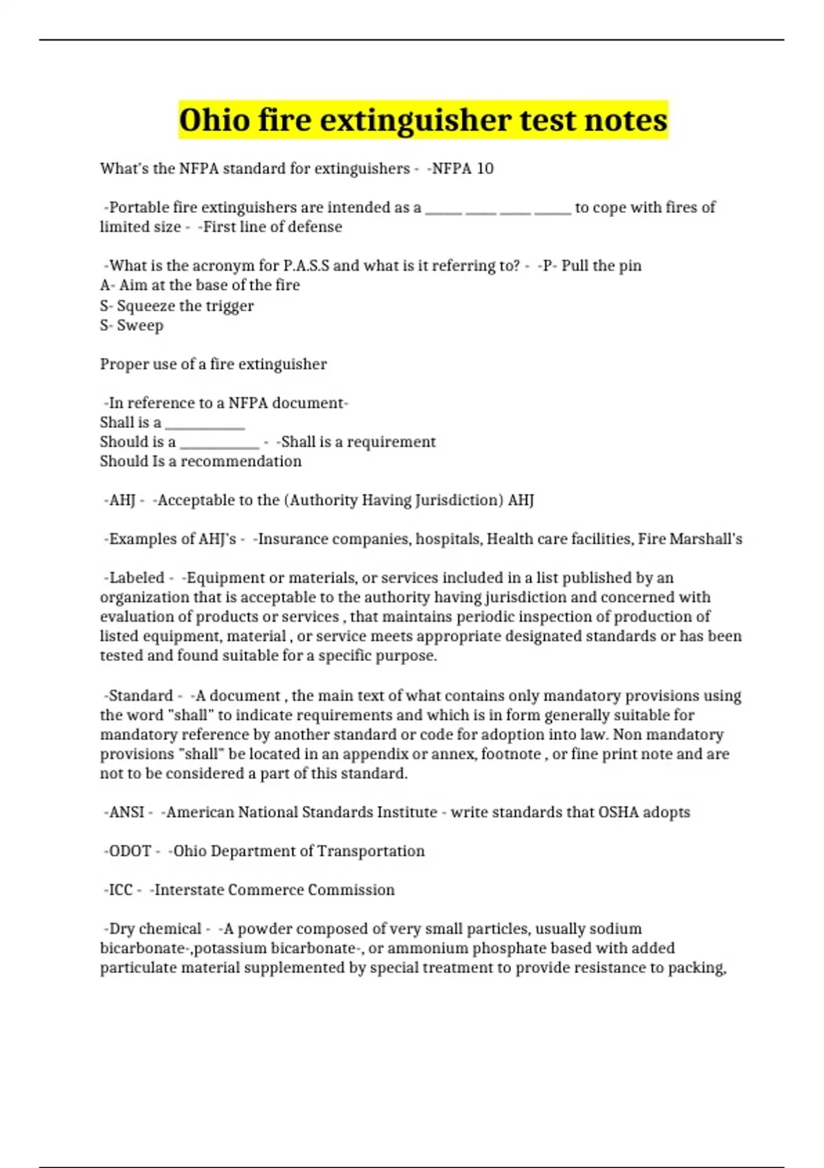 Ohio fire extinguisher test notes