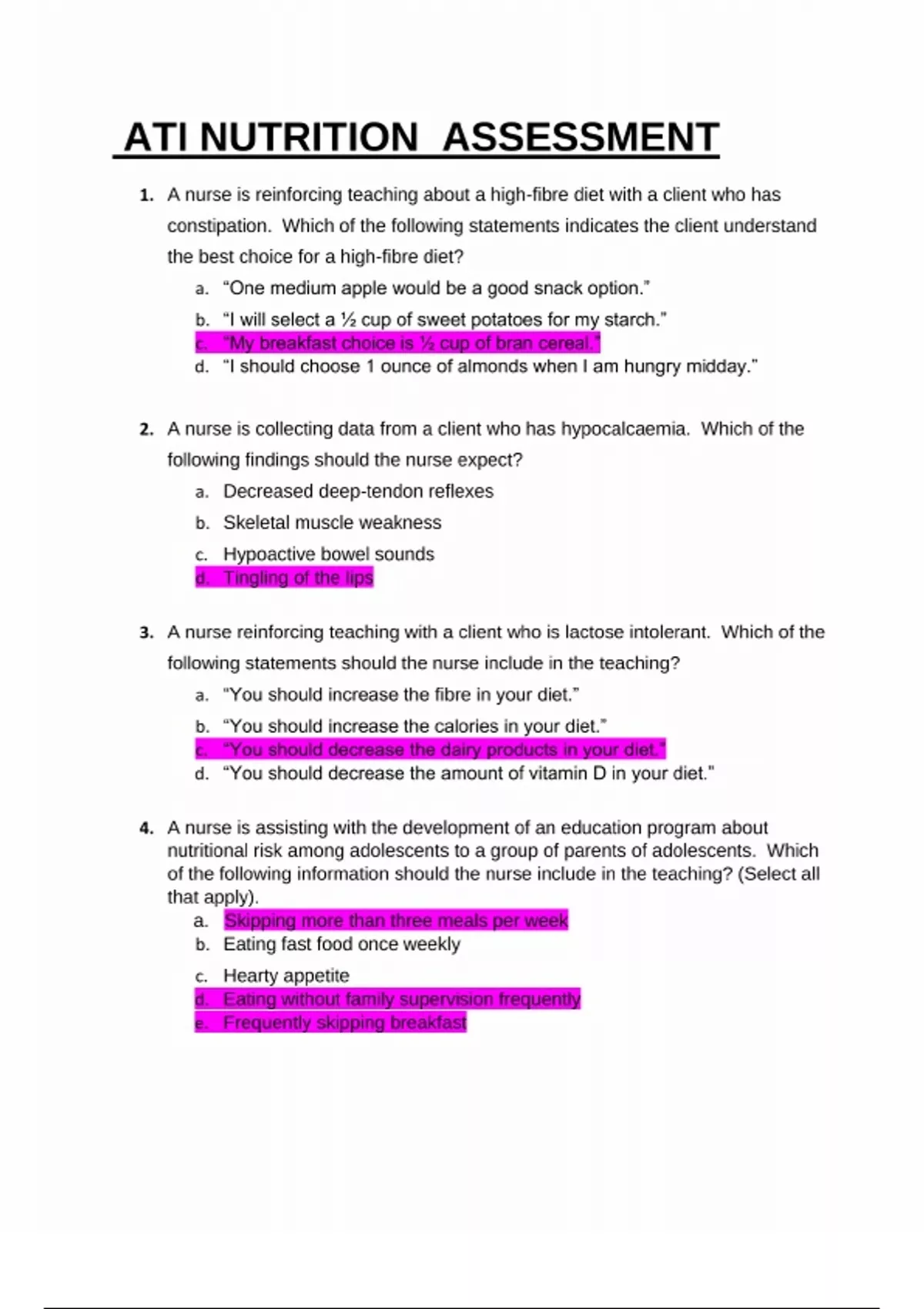 - ati nutrition assessment
