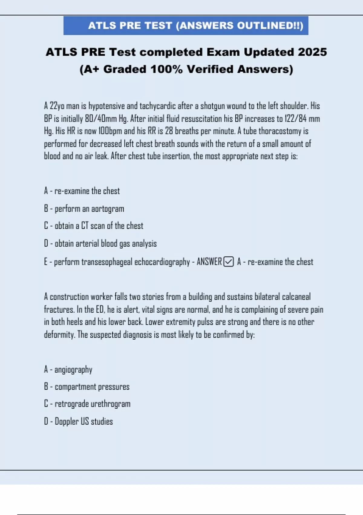 ATLS PRE Test completed Exam Updated 2025 (A+ Graded 100% Verified Answers)