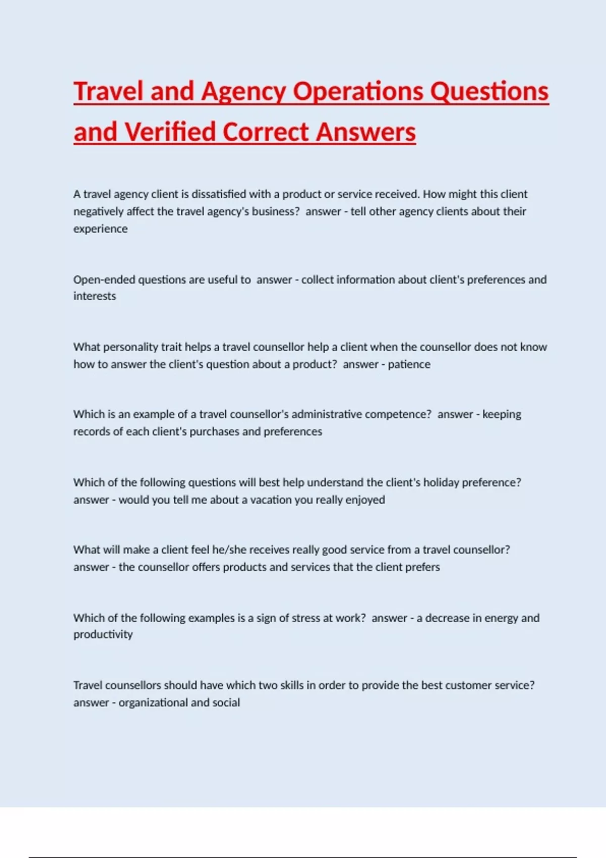 negatively affect the travel agency's business? answer - tell other agency clients about their
