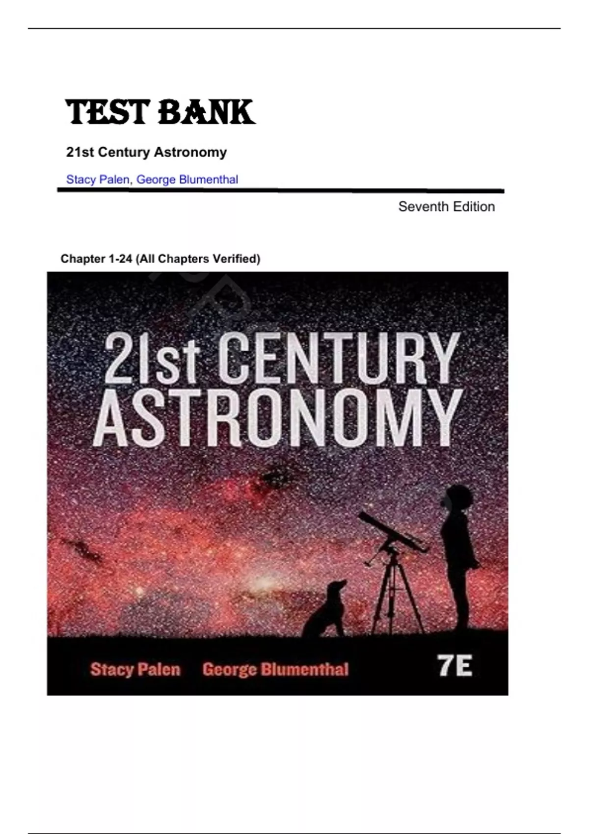 TEST BANK FOR 21st Century Astronomy Seventh Edition by Stacy Palen , ISBN: 9780393877021 Chapter 1-24 |All Chapters Verified| Guide A+