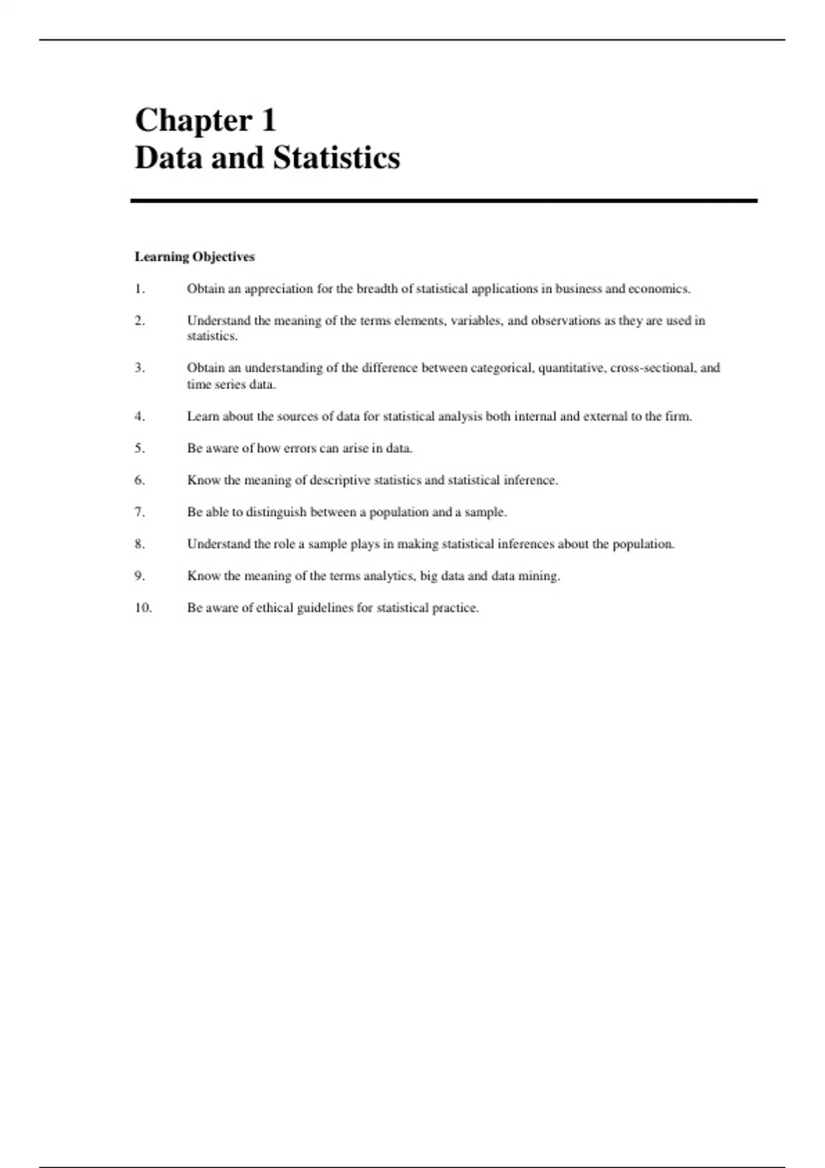 1. Obtain an appreciation for the breadth of statistical applications in business and economics.