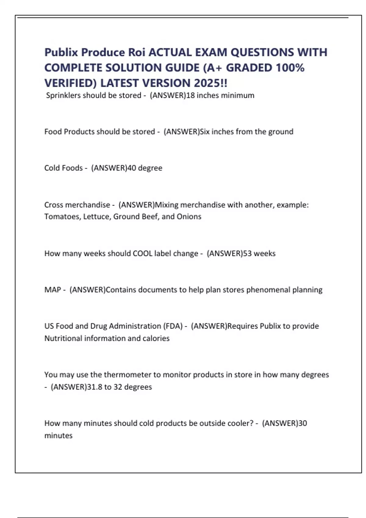 Publix Produce Roi ACTUAL EXAM QUESTIONS WITH