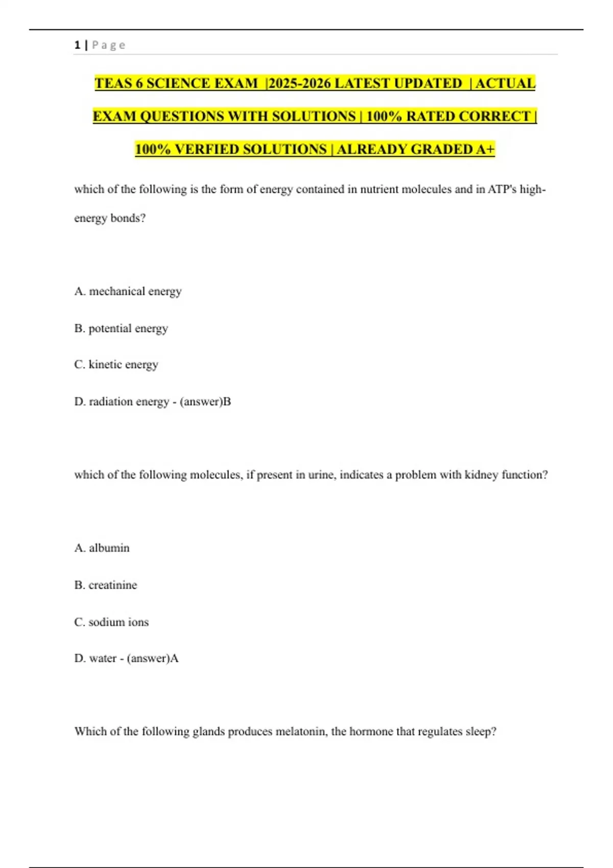 TEAS 6 SCIENCE EXAM |2025-2026 LATEST UPDATED | ACTUAL