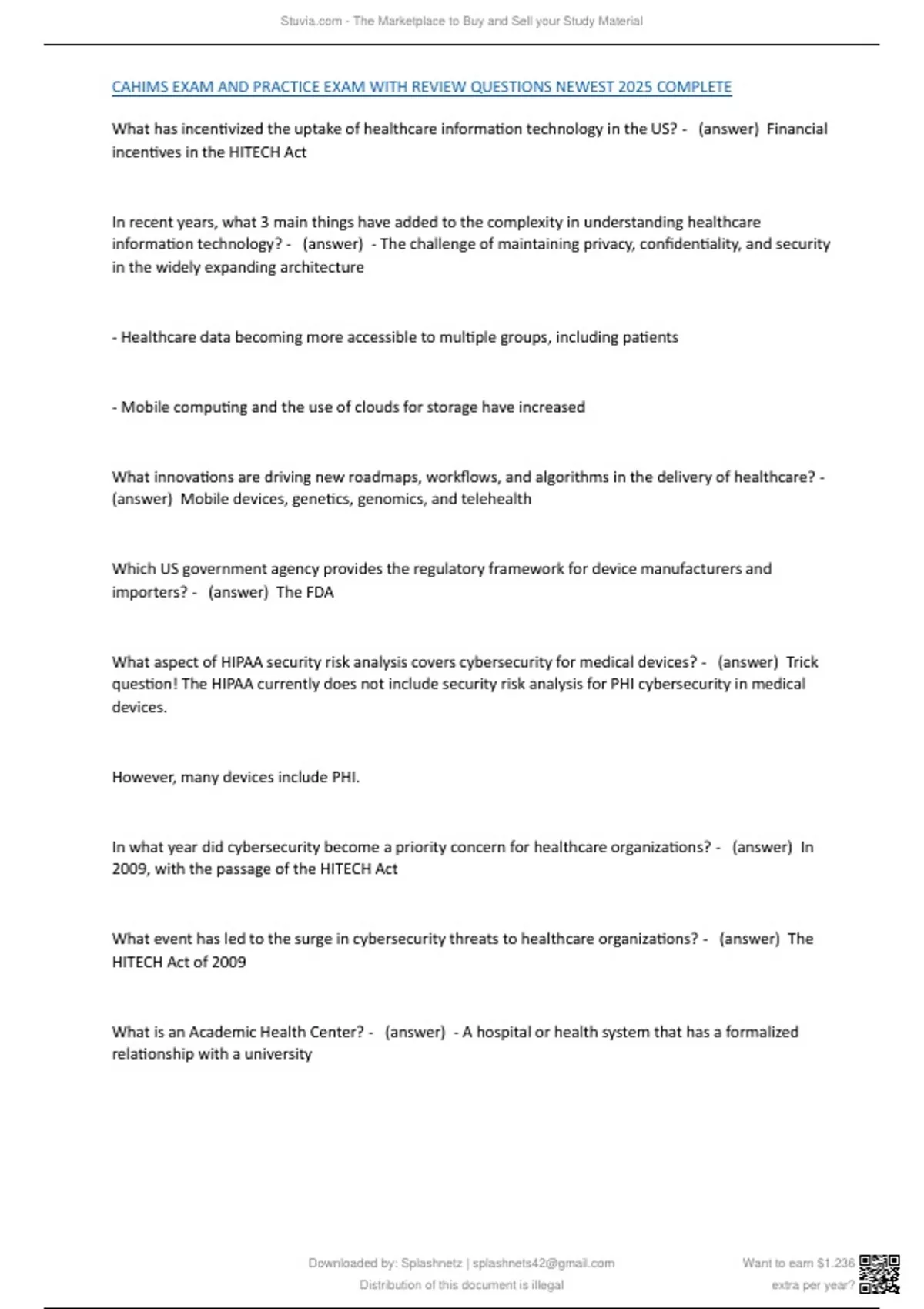 CAHIMS EXAM AND PRACTICE EXAM WITH REVIEW QUESTIONS NEWEST 2025 COMPLETE
