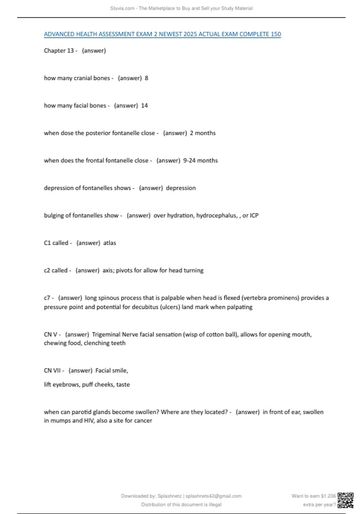 ADVANCED HEALTH ASSESSMENT EXAM 2 NEWEST 2025 ACTUAL EXAM COMPLETE 150