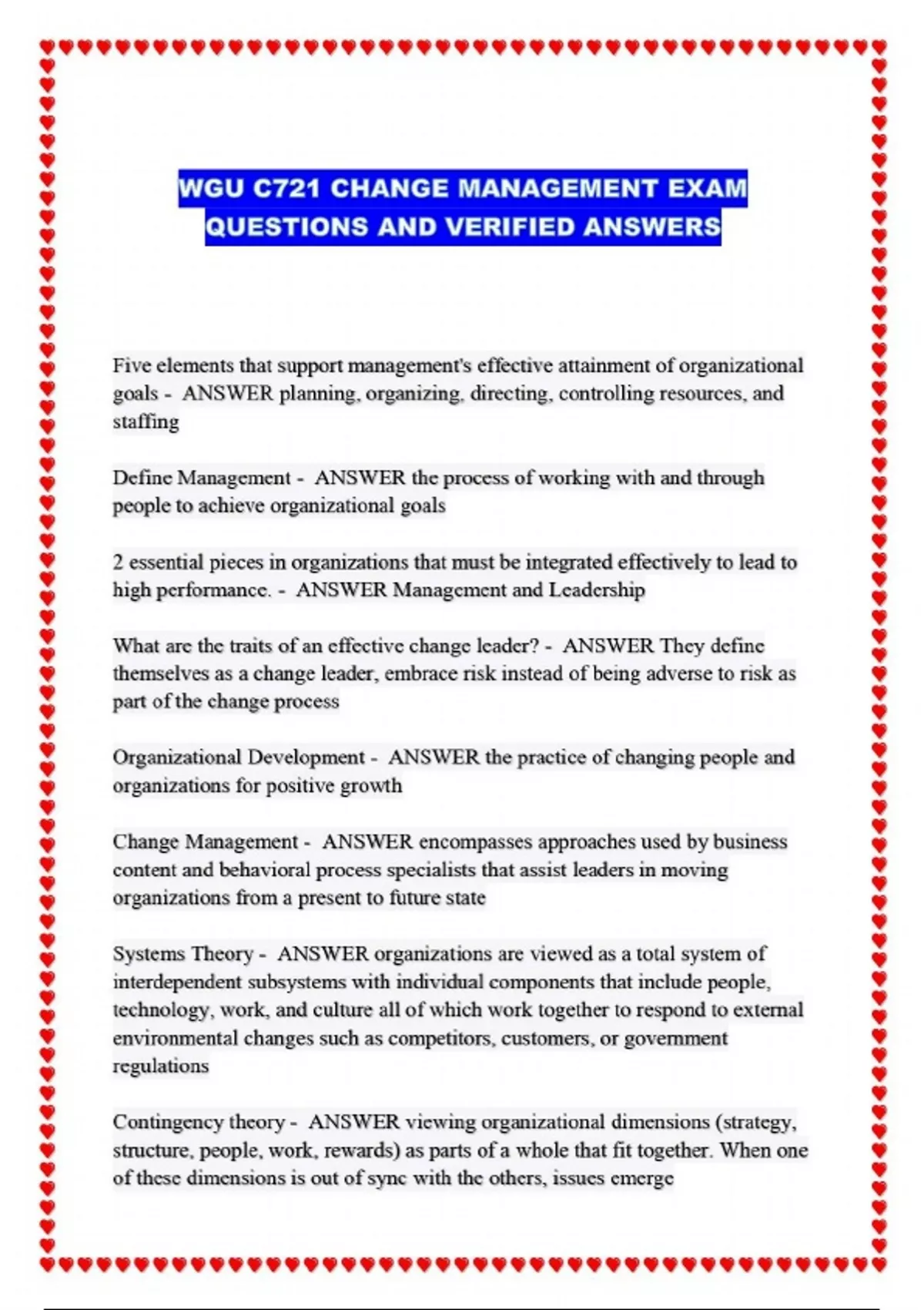 WGU C721 CHANGE MANAGEMENT EXAM QUESTIONS AND VERIFIED ANSWERS