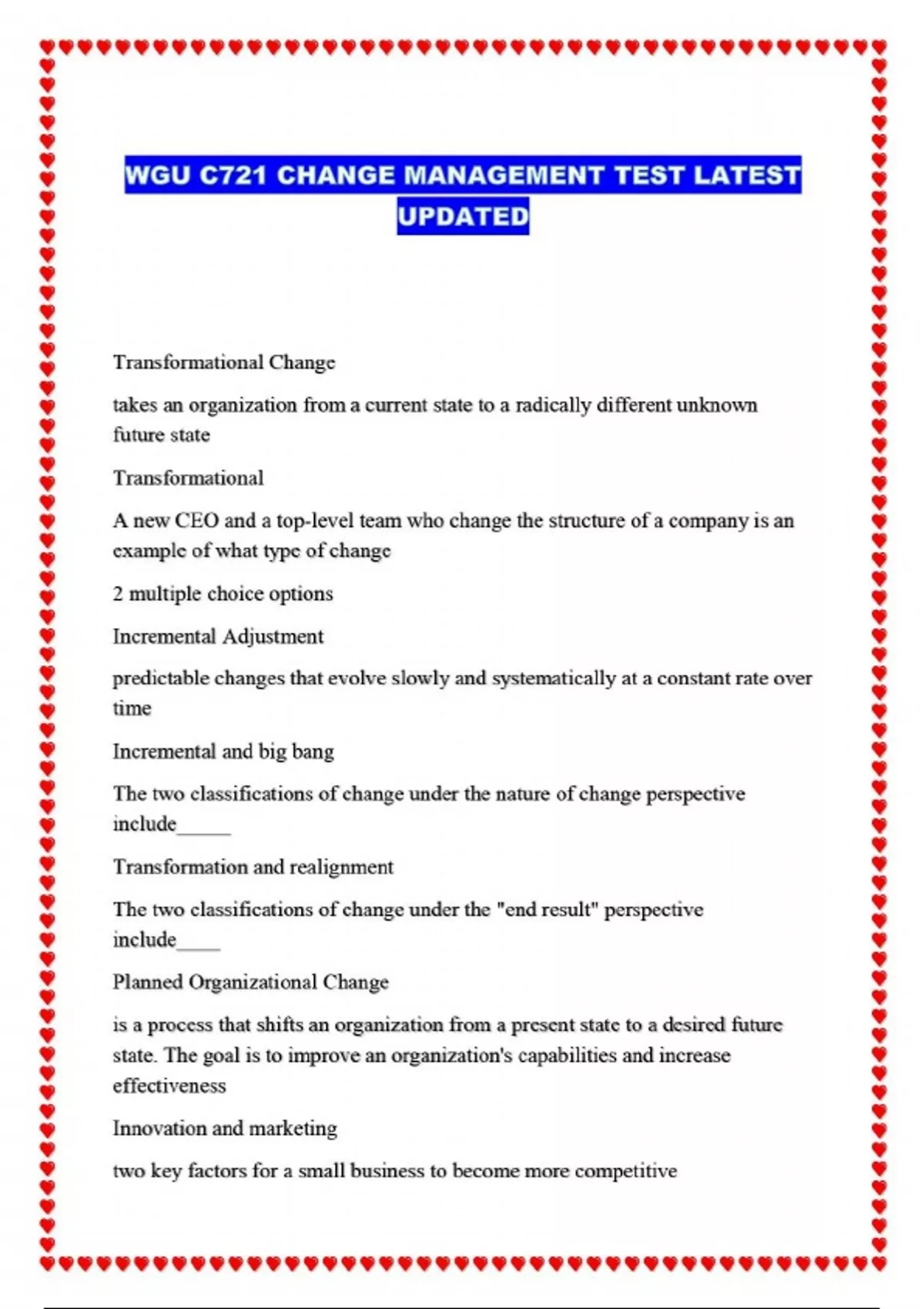 WGU C721 CHANGE MANAGEMENT TEST LATEST UPDATED...