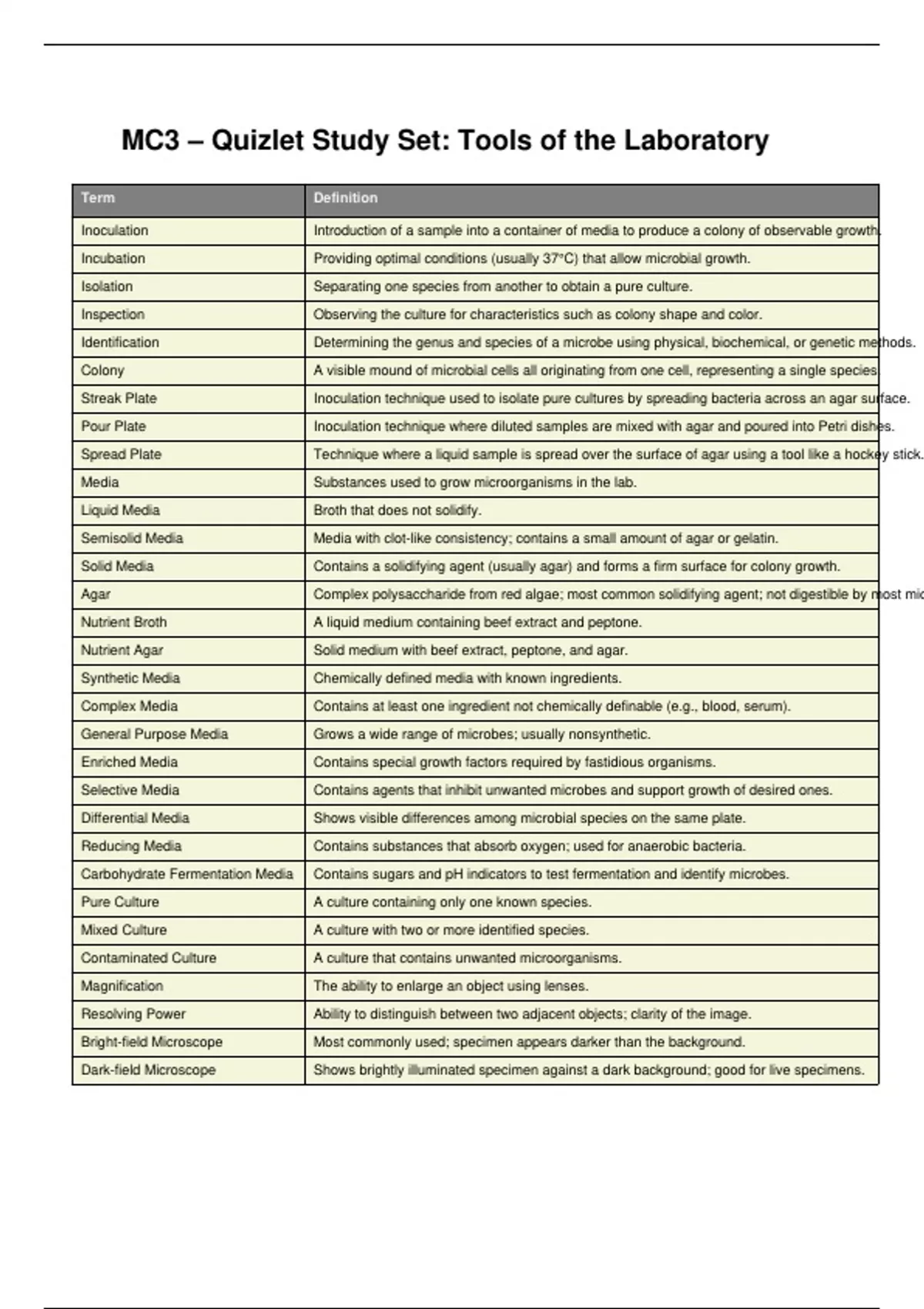 MC3 – Quizlet Study Set: Tools of the Laboratory