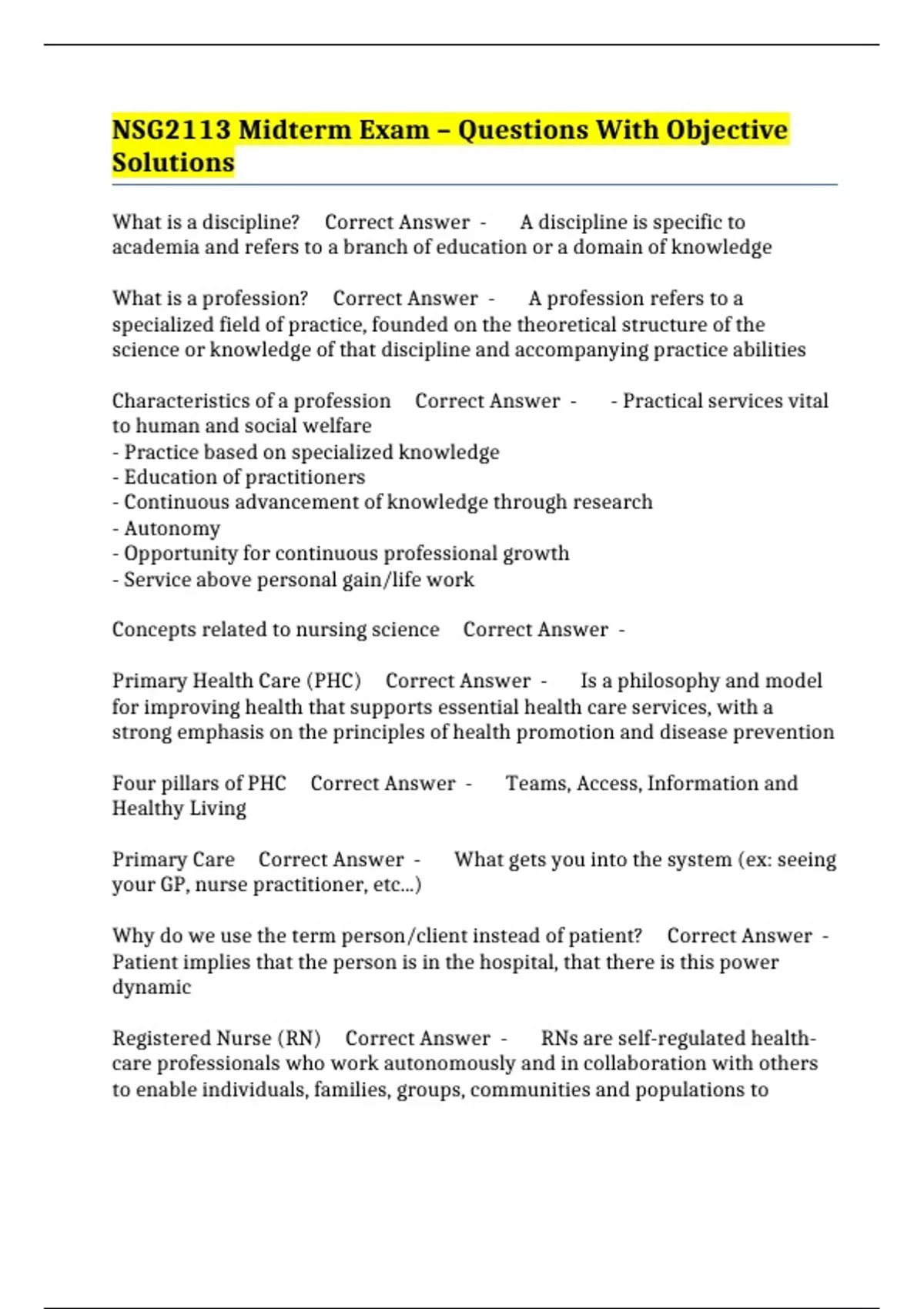 Registered Nurse (RN) Correct Answer - RNs are self-regulated health-