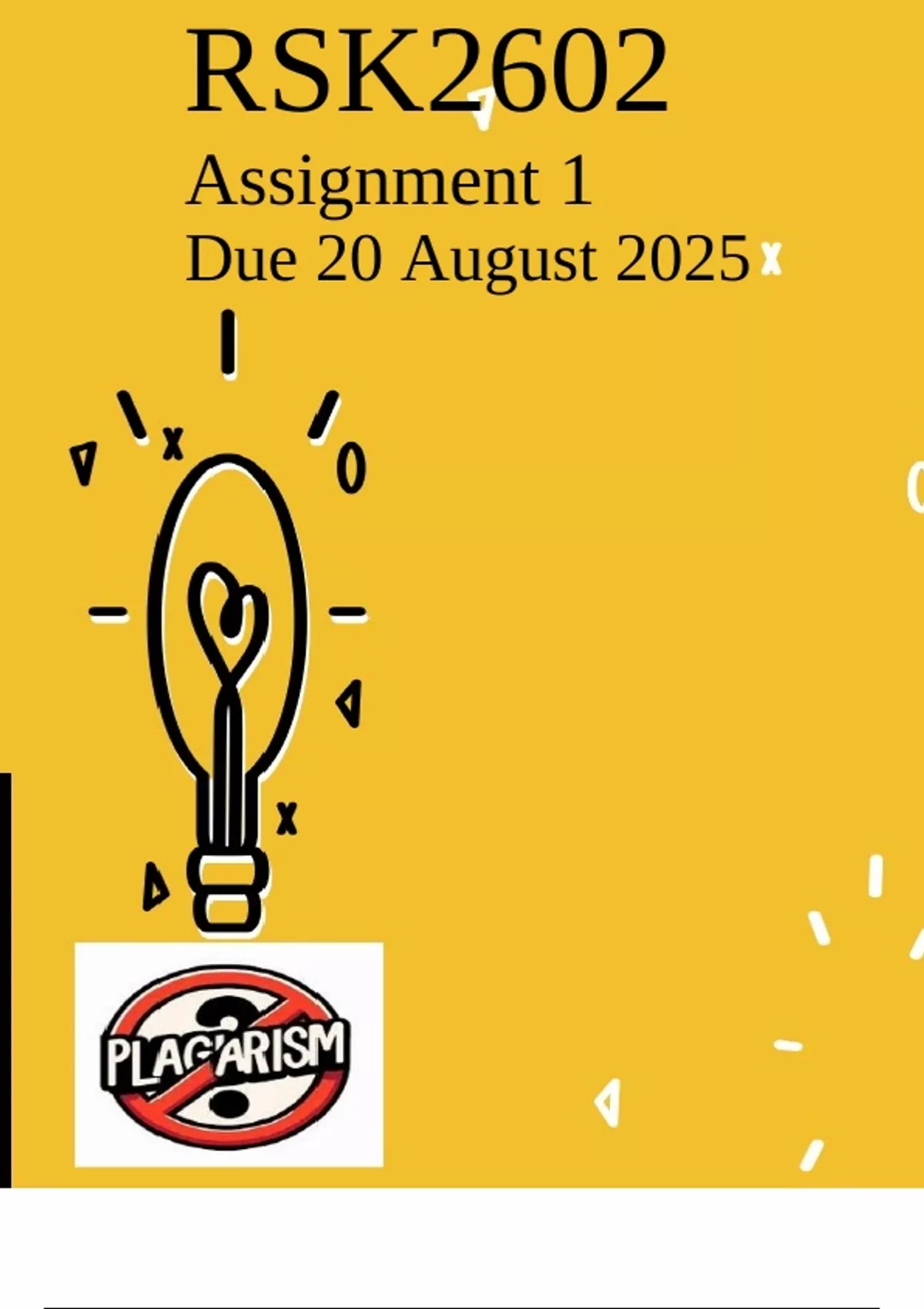 RSK2602 Assignment 1 Semester 2 2025 - Due 20 August 2025 100% solved answers.Stop starting from scratch.Download your copy today and get a head start.