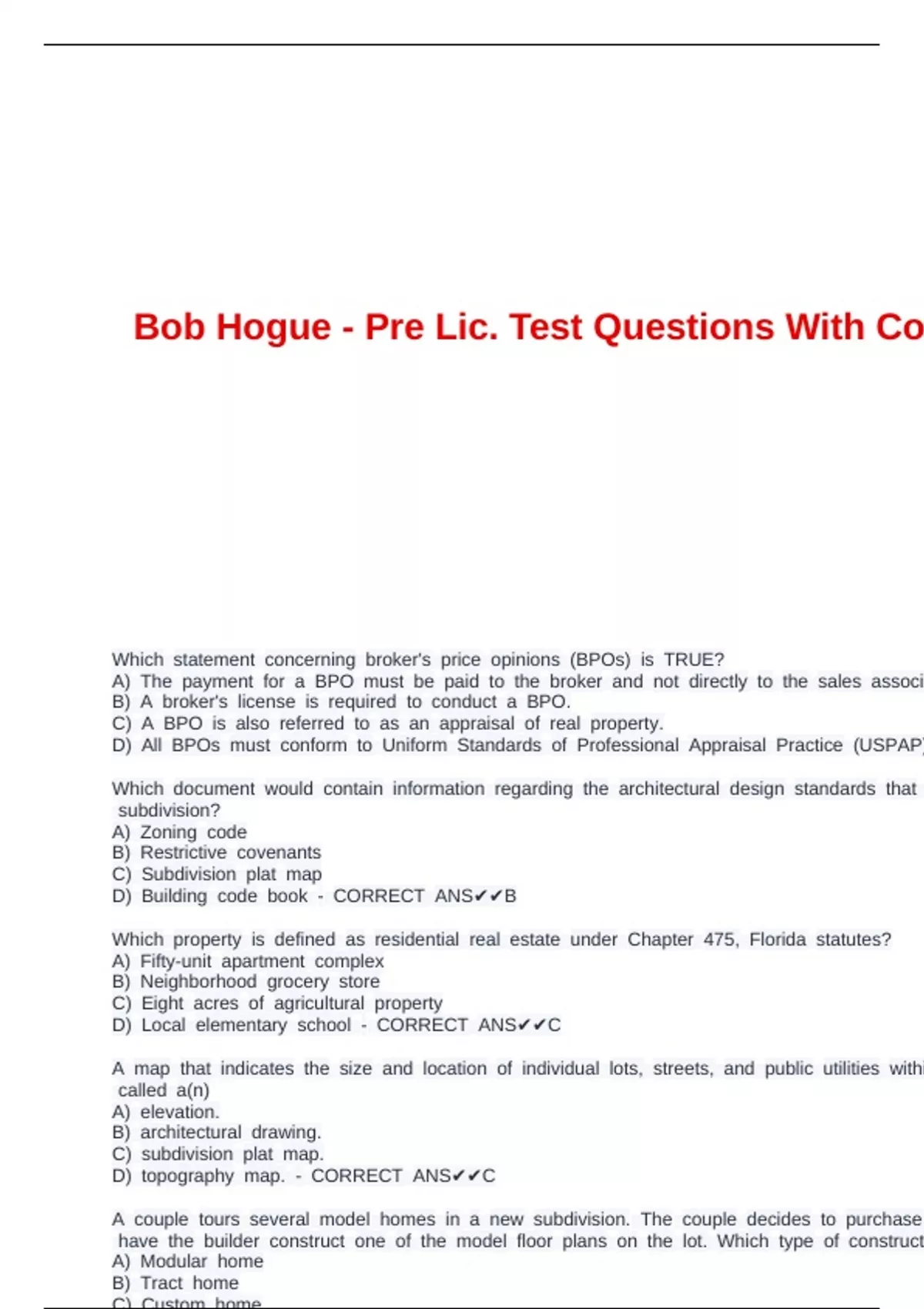 Civil c- cCORRECT cANS✔✔A