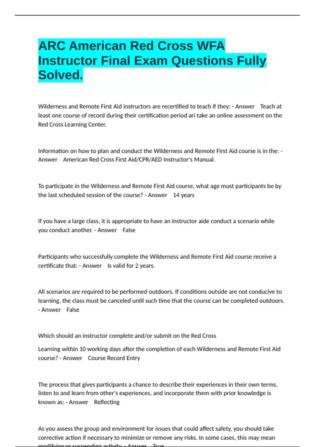 Instructor Final Exam Questions Fully