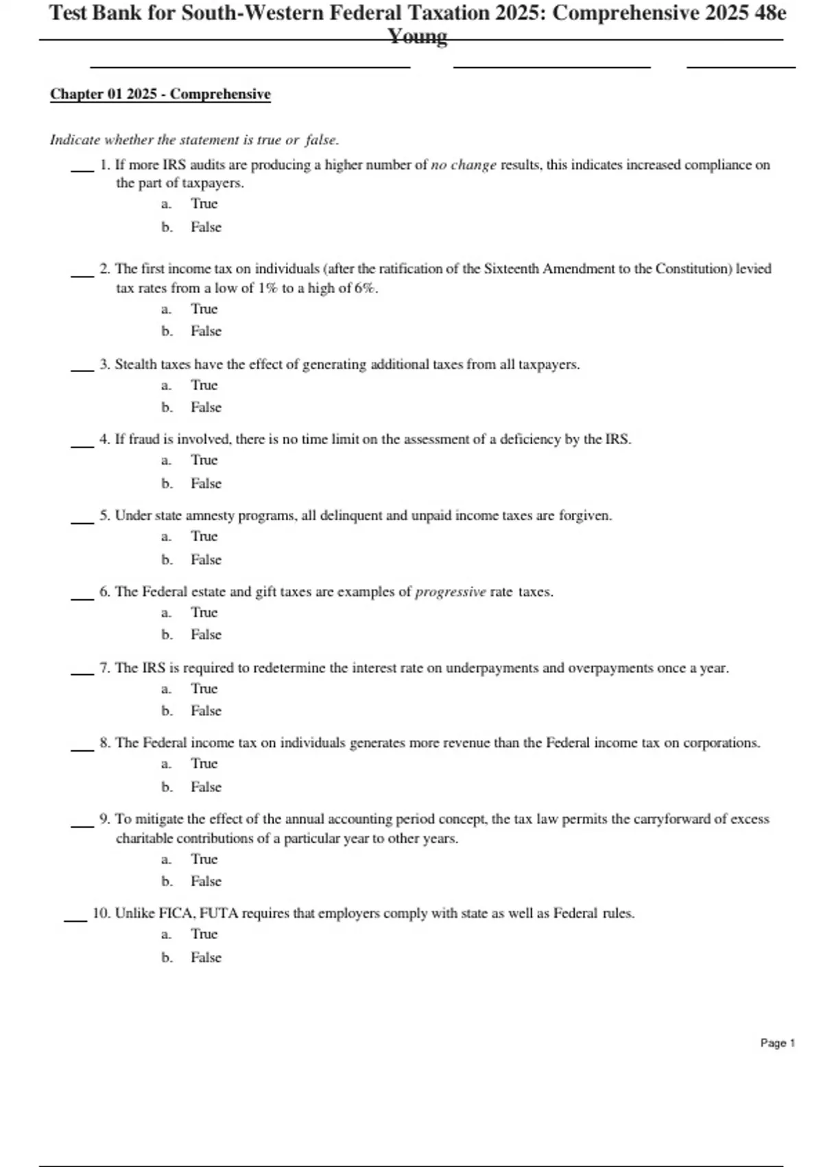 Test Bank South-Western Federal Taxation 2025: Comprehensive 48th Edition by James C. Young all chapters download