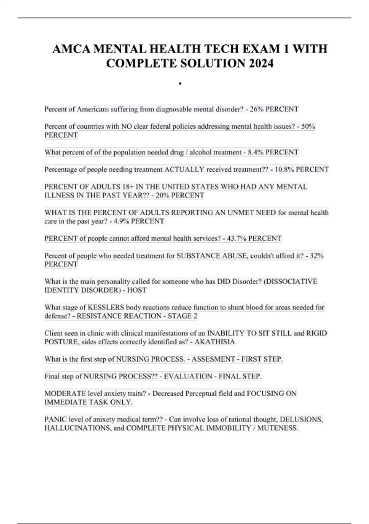 AMCA MENTAL HEALTH TECH EXAM 1 WITH COMPLETE SOLUTION 2024AMCA MENTAL HEALTH TECH EXAM 1 WITH COMPLETE SOLUTION 2024AMCA MENTAL HEALTH TECH EXAM 1 WITH COMPLETE SOLUTION 2024AMCA MENTAL HEALTH TECH EXAM 1 WITH COMPLETE SOLUTION 2024AMCA MENTAL HEALTH TECH EXAM 1 WITH COMPLETE SOLUTION 2024