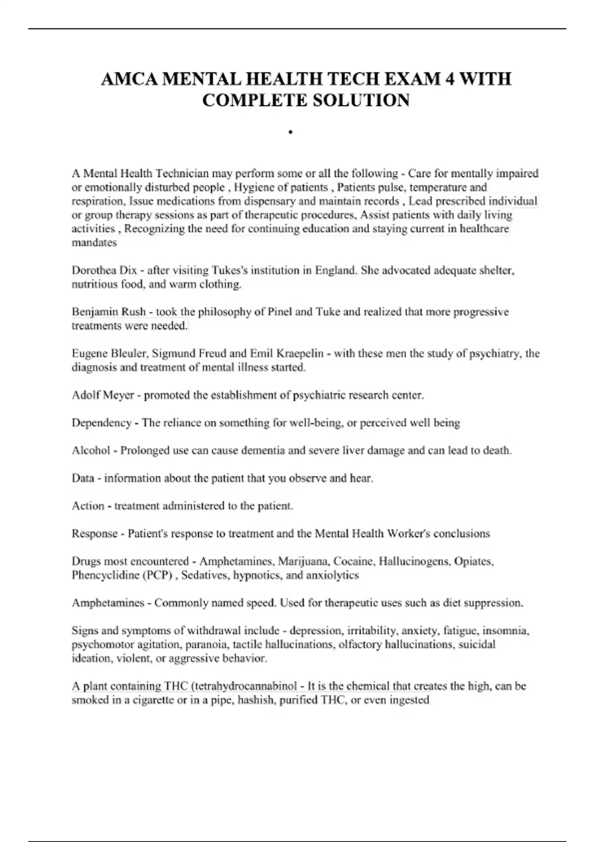 AMCA MENTAL HEALTH TECH EXAM 4 WITH COMPLETE SOLUTION AMCA MENTAL HEALTH TECH EXAM 4 WITH COMPLETE SOLUTIONAMCA MENTAL HEALTH TECH EXAM 4 WITH COMPLETE SOLUTIONAMCA MENTAL HEALTH TECH EXAM 4 WITH COMPLETE SOLUTIONAMCA MENTAL HEALTH TECH EXAM 4 WITH COMPLETE SOLUTION