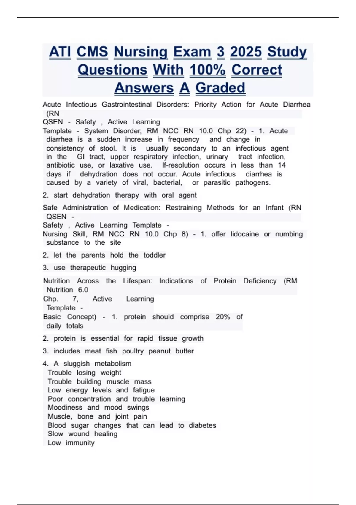 ATI CMS Nursing Exam 3 2025 Study Questions With 100% Correct Answers A Graded ATI CMS Nursing Exam 3 2025 Study Questions With 100% Correct Answers A Graded ATI CMS Nursing Exam 3 2025 Study Questions With 100% Correct Answers A Graded ATI CMS Nursing Exam 3 2025 Study Questions With 100% Correct Answers A Graded ATI CMS Nursing Exam 3 2025 Study Questions With 100% Correct Answers A Graded