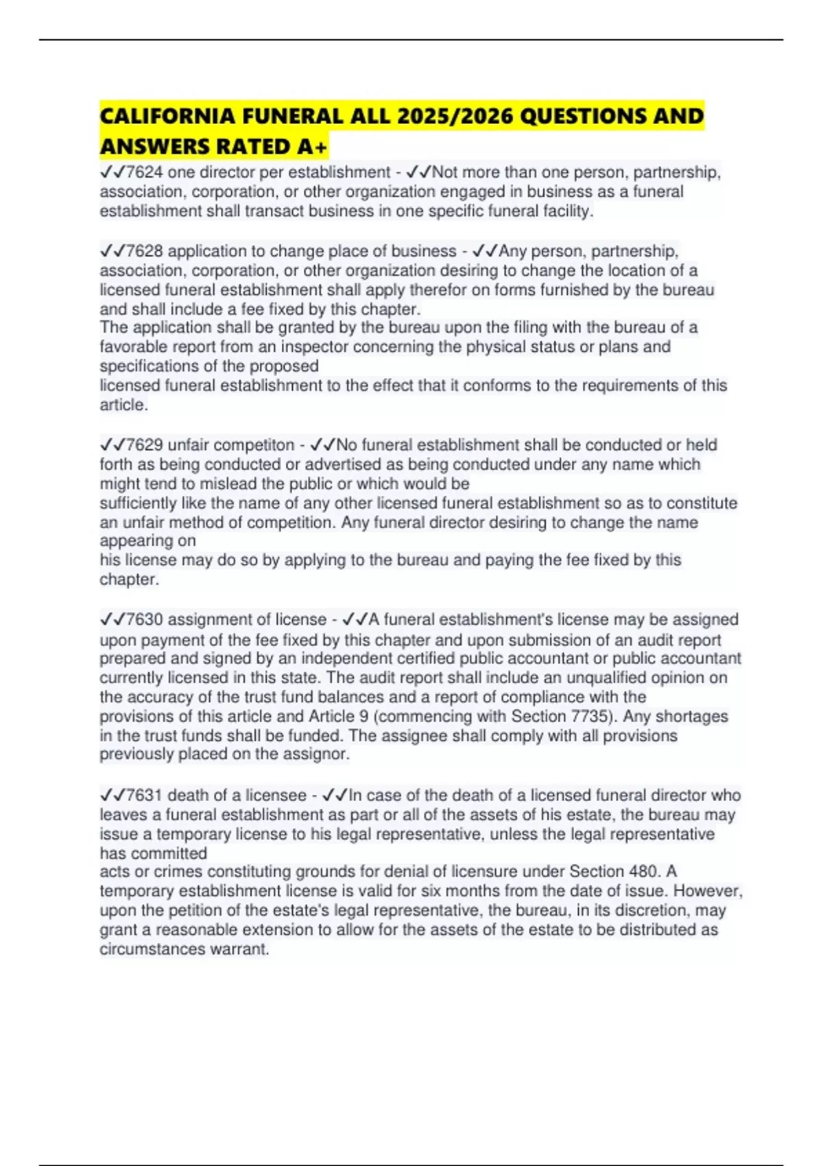 CALIFORNIA FUNERAL ALL 2025/2026 QUESTIONS AND ANSWERS RATED A+