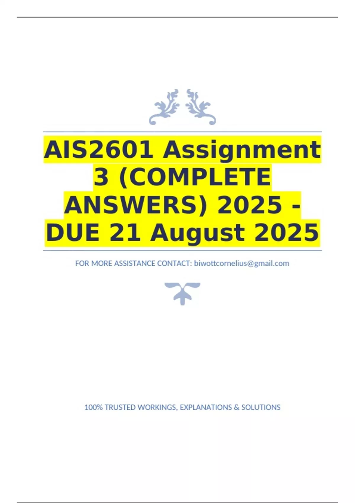 AIS2601 Assignment 3 (COMPLETE ANSWERS) 2025 - DUE 21 August 2025