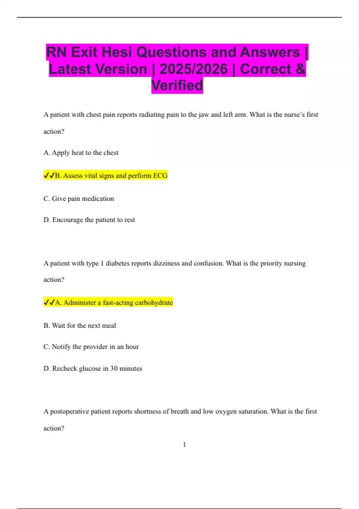 ✔✔B. Assess vital signs and perform ECG