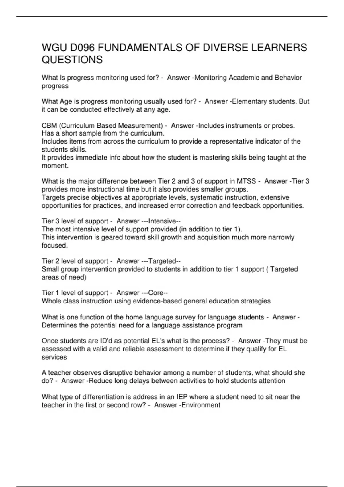 WGU D096 FUNDAMENTALS OF DIVERSE LEARNERS