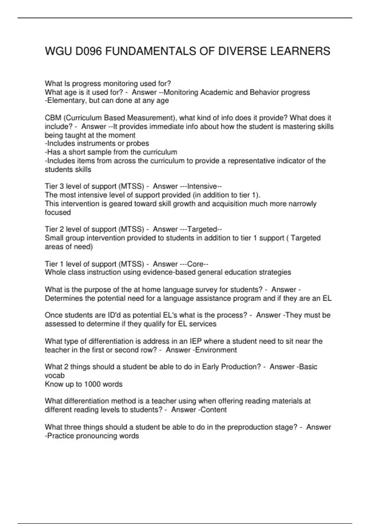 WGU D096 FUNDAMENTALS OF DIVERSE LEARNERS