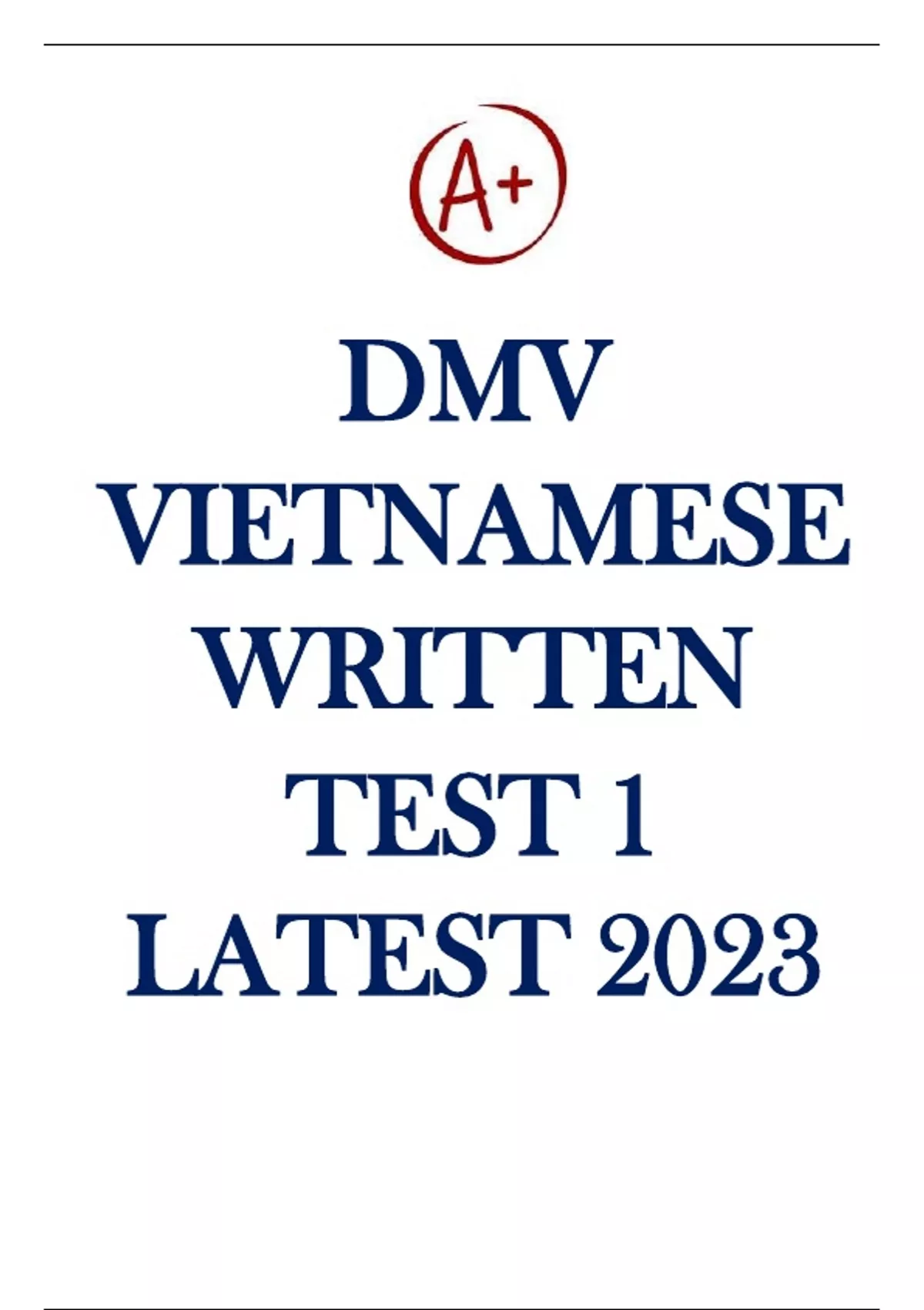 This DMV Vietnamese Written Test 1 study pack provides a complete set of practice questions with correct answers, designed to help learners prepare for the DMV knowledge/written test in the Vietnamese language. Covers road signs, traffic rules, safe driving practices, and regulations Written in Vietnamese for easy understanding Includes multiple-choice questions with correct answers Useful for learners preparing for the driver’s license test in the U.S. Updated for 2023/2024/2025 DMV exam preparation This resource is perfect for Vietnamese-speaking learners who want to practice and pass their DMV written test with confidence.