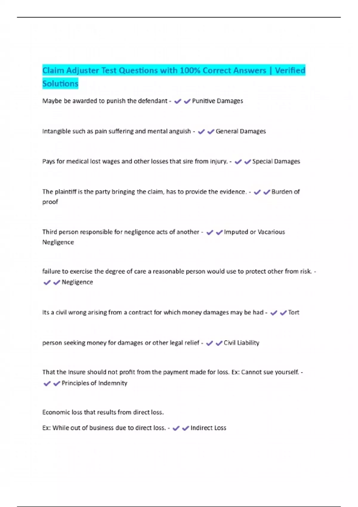 Claim Adjuster Test Questions with 100% Correct Answers | Verified Solutions
