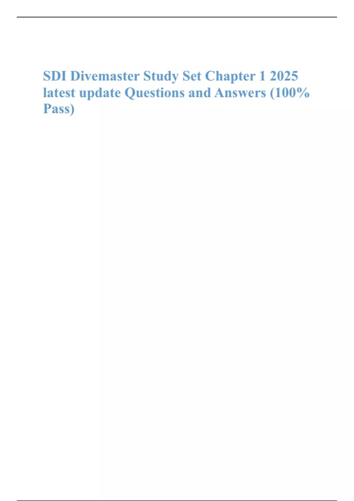 SDI Divemaster Study Set Chapter 1 2025 latest update Questions and Answers (100% Pass)