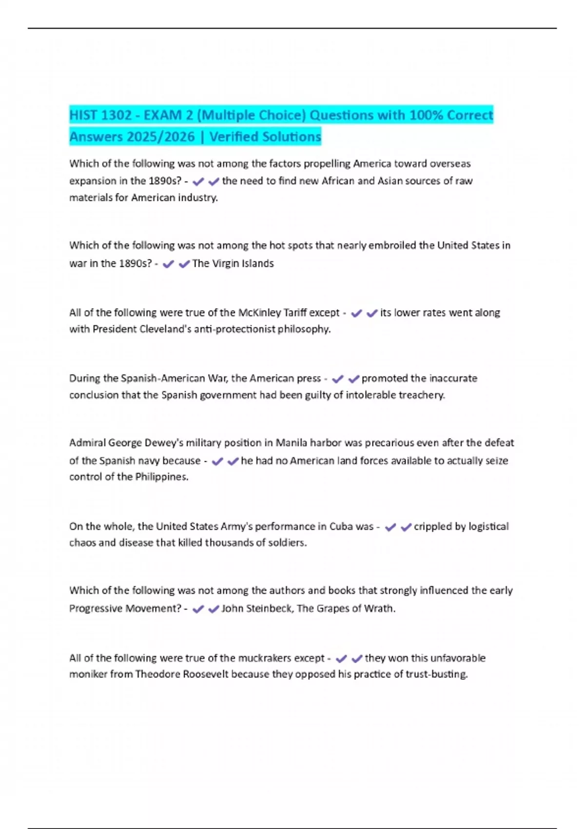 HIST 1302 - EXAM 2 (Multiple Choice) Questions with 100% Correct Answers 2025/2026 | Verified Solutions
