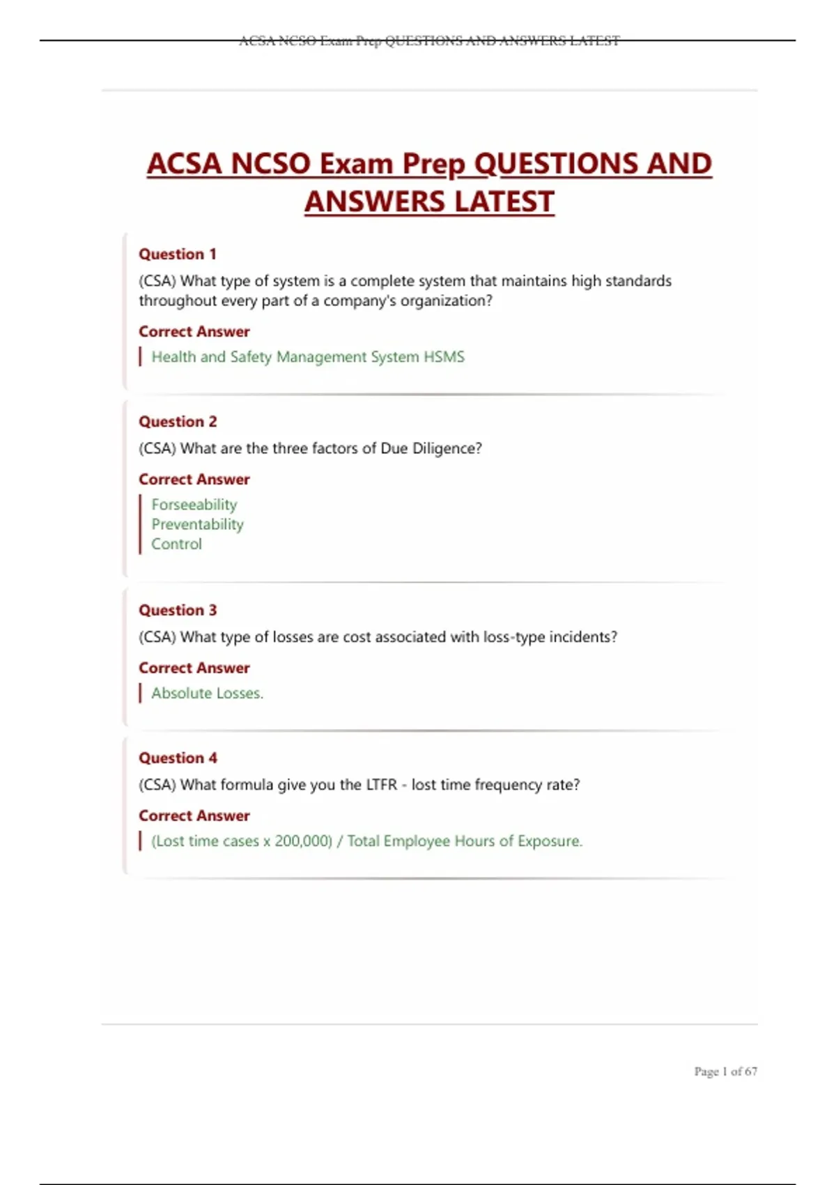, ACSA NCSO Exam Prep QUESTIONS AND ANSWERS LATEST