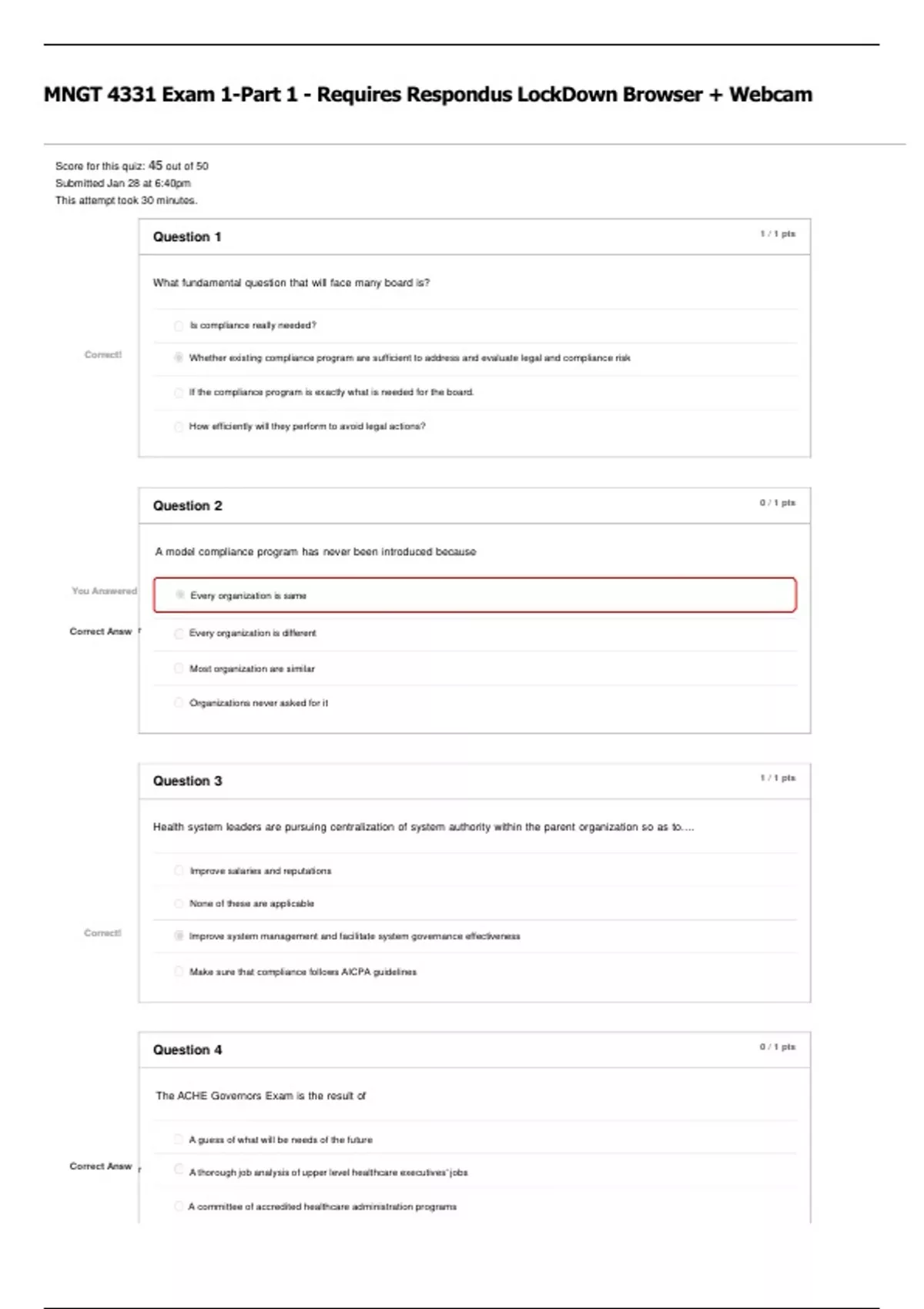 Correct Answ er Every organization is different