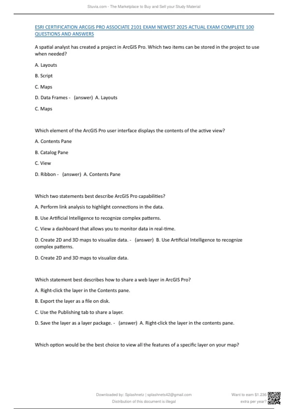 ESRI CERTIFICATION ARCGIS PRO ASSOCIATE 2101 EXAM NEWEST 2025 ACTUAL EXAM COMPLETE 100