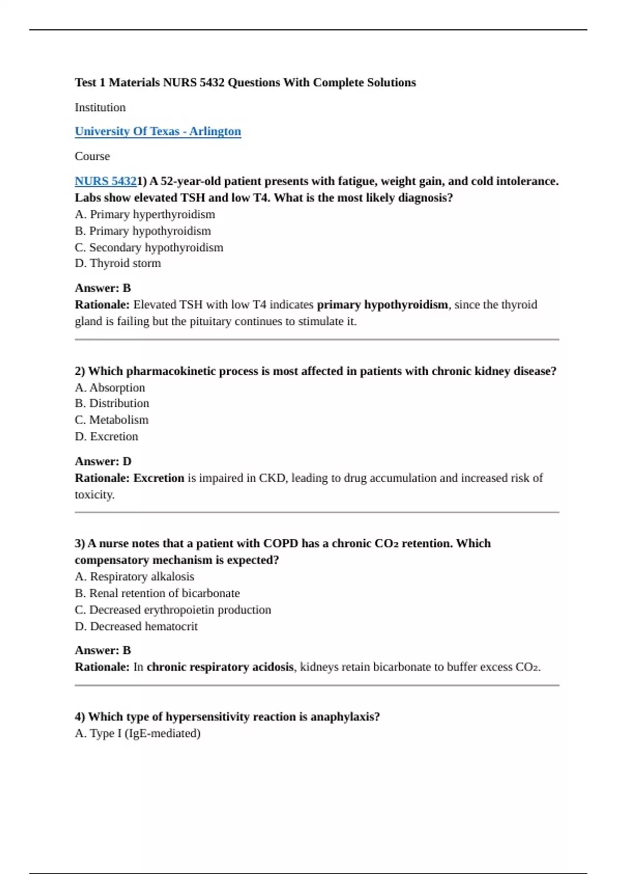 NURS 54321) A 52-year-old patient presents with fatigue, weight gain, and cold intolerance.