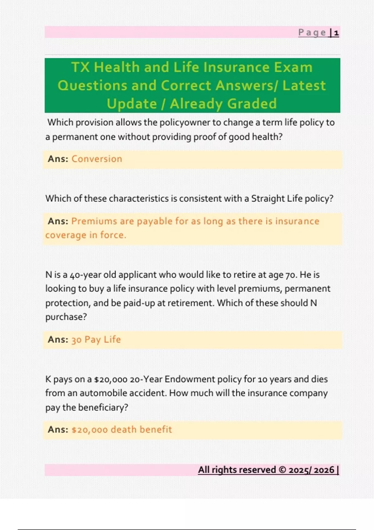 TX Health and Life Insurance Exam