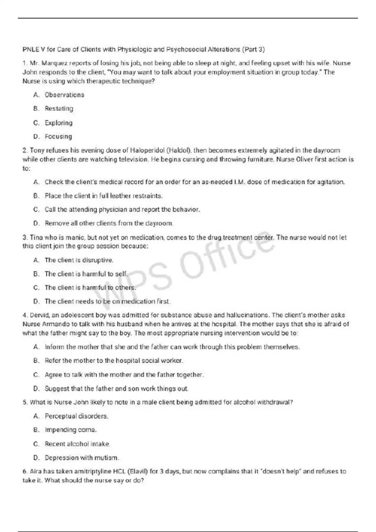PNLE V Care of clients With physiologic And Psychosocial Alterations Exam 2025