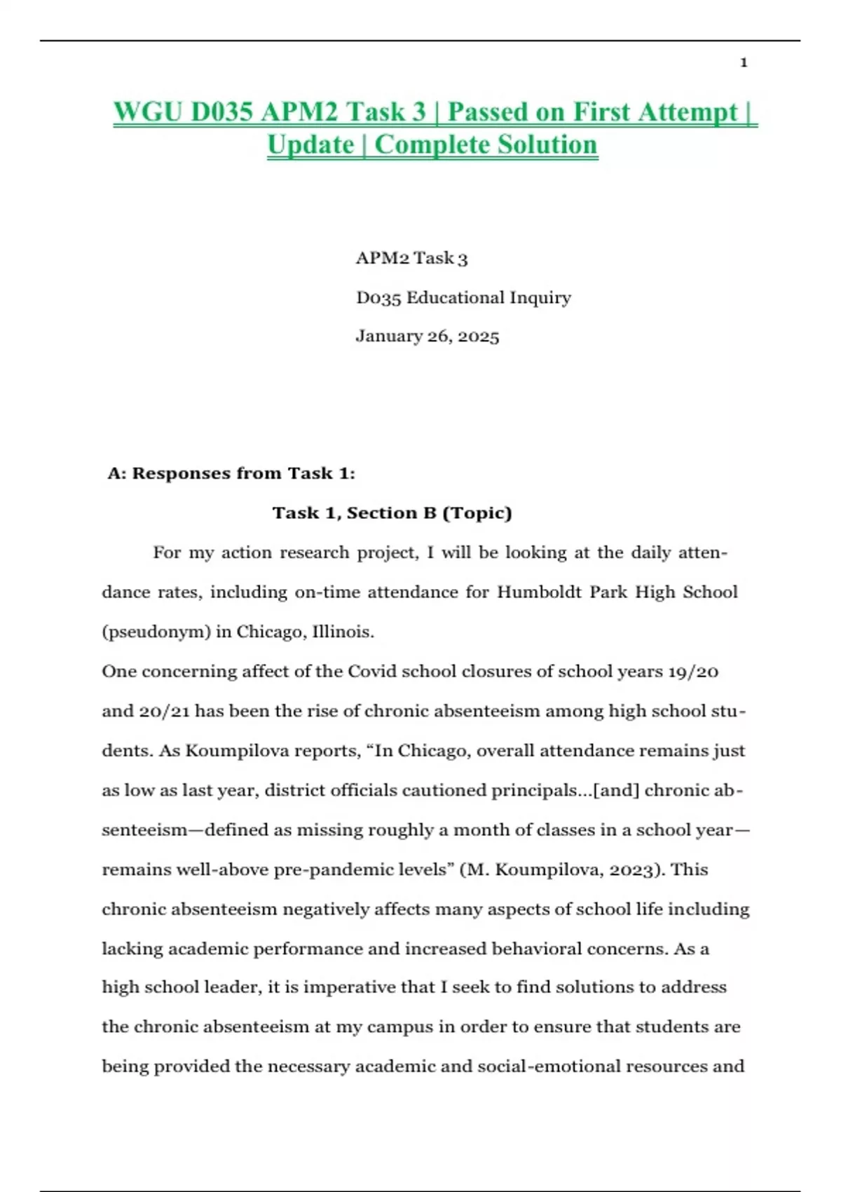 WGU D035 APM2 Task 3 | Passed on First Attempt |