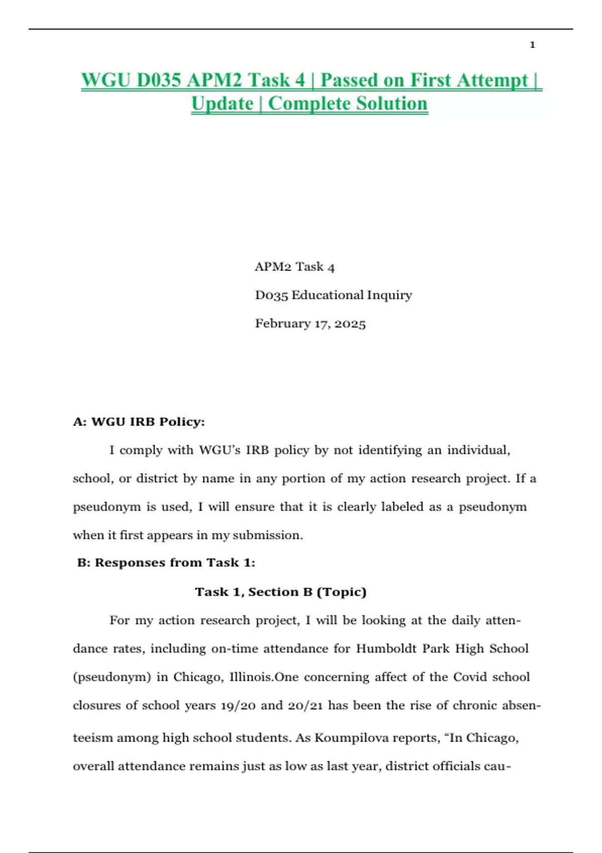 WGU D035 APM2 Task 4 | Passed on First Attempt |