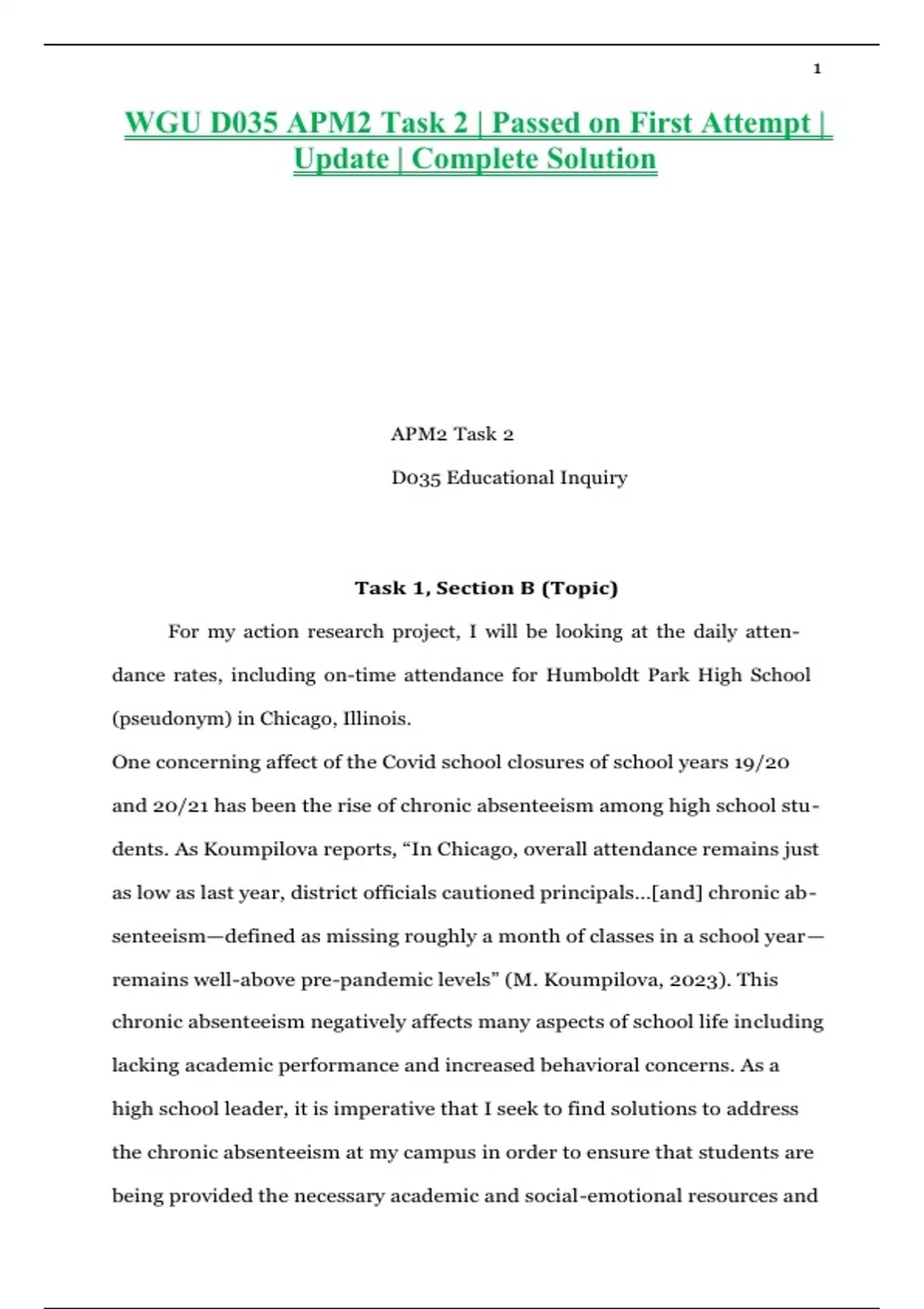 WGU D035 APM2 Task 2 | Passed on First Attempt | Update | Complete Solution