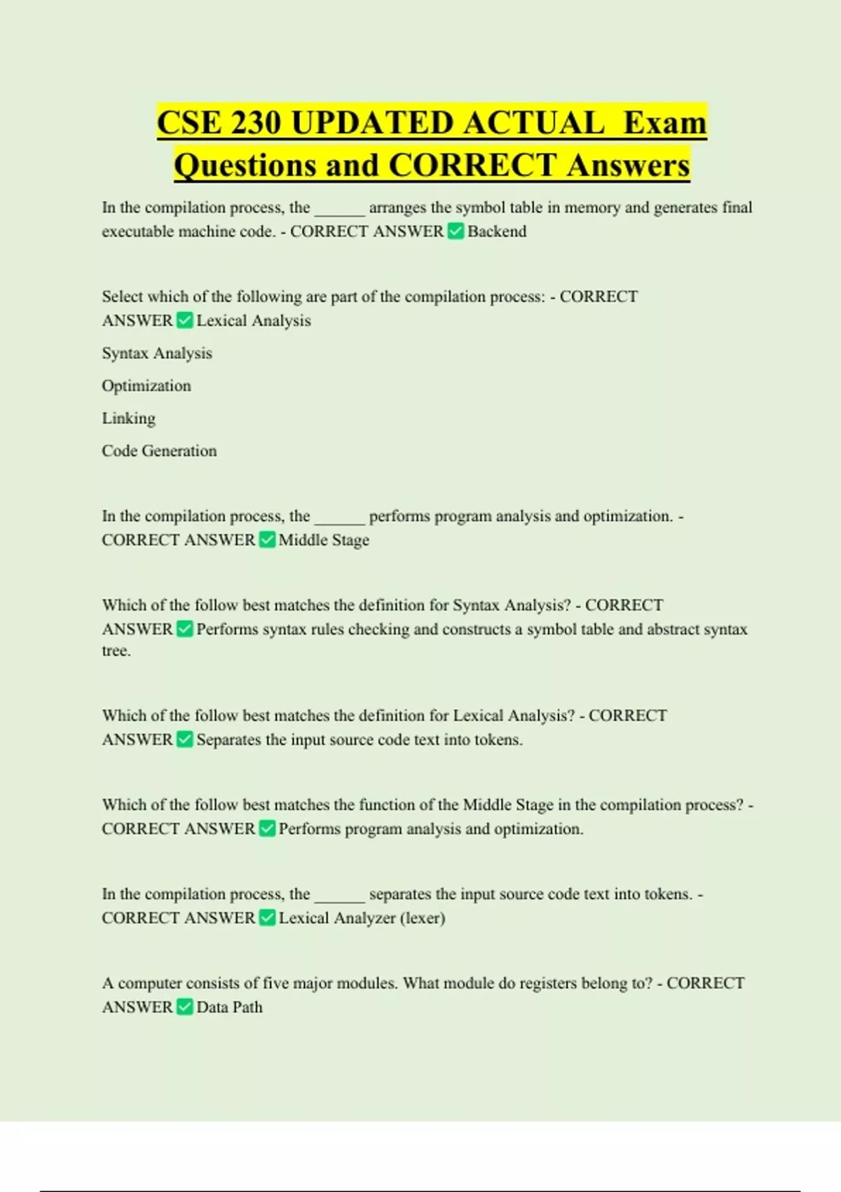 Questions and CORRECT Answers