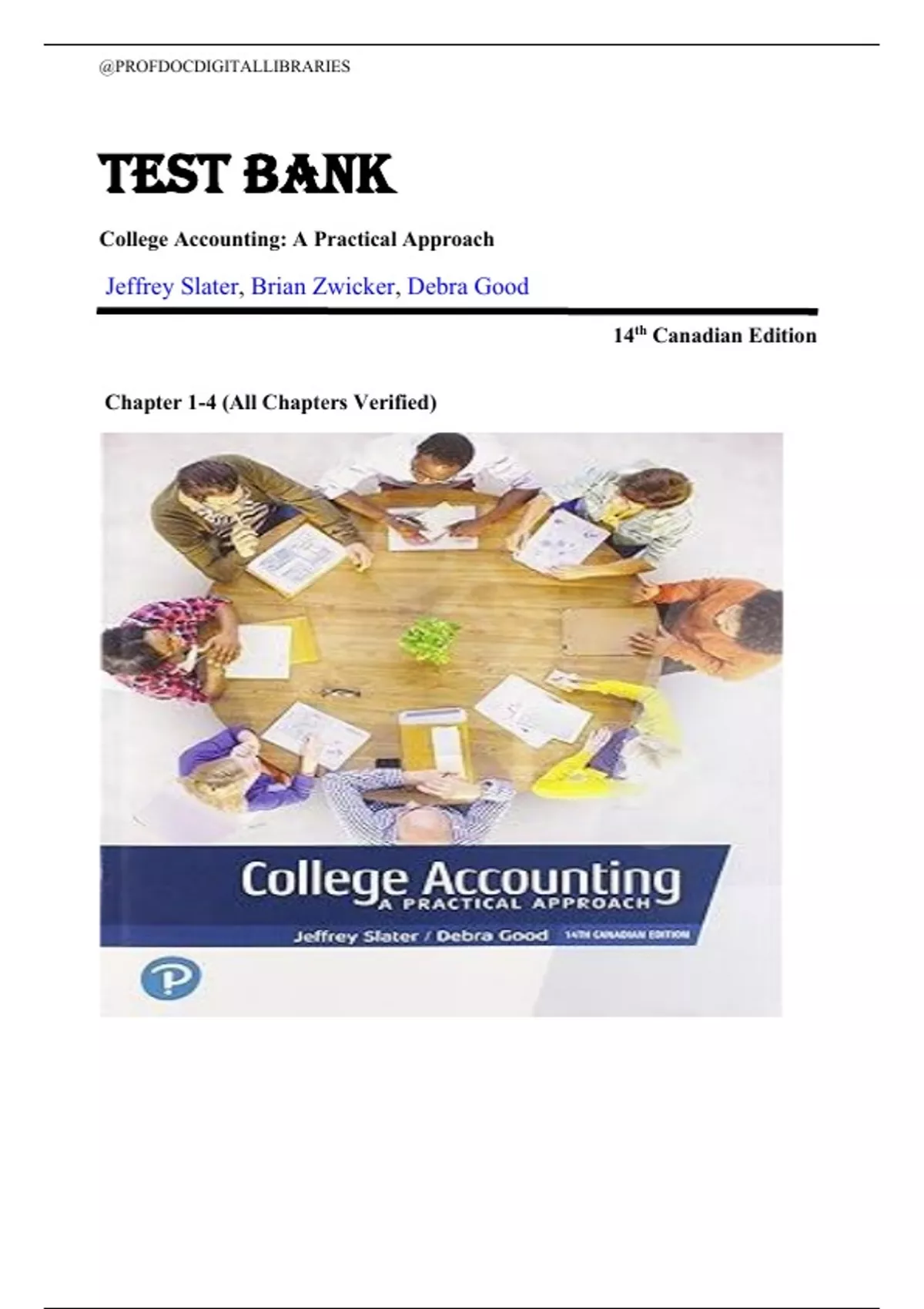 TEST BANK FOR College Accounting: A Practical Approach, 14th Canadian Edition by Jeffrey Slater , ISBN: 9780135222416 Chapter 1-4 |All Chapters Verified| Guide A+