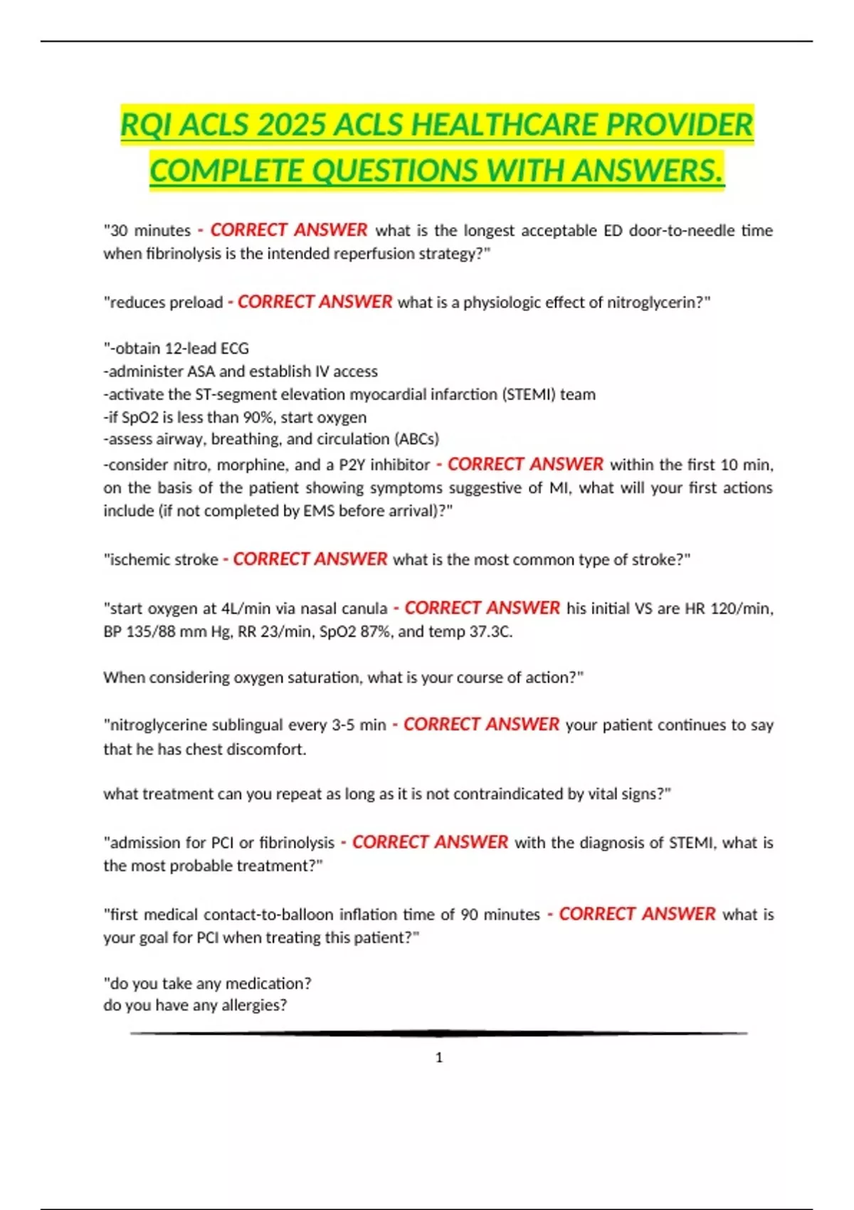 "30 minutes - CORRECT ANSWER what is the longest acceptable ED door-to-needle time
